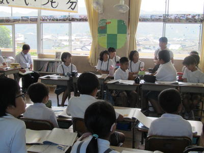 〇今日は英語アドバイザーの先生がいらっしゃって、5年生と6年2組の授業の様子を見られました。