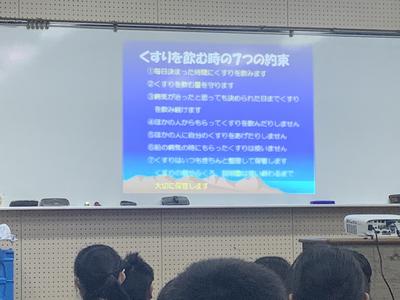 飲酒の危険、喫煙の危険、薬物乱用の危険などについてお話がありました。