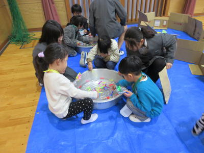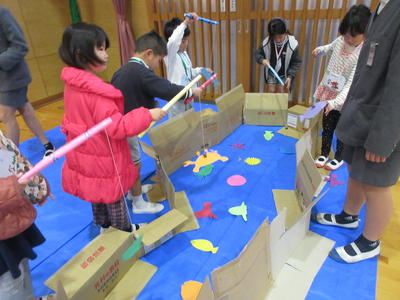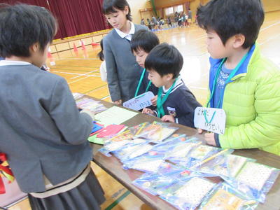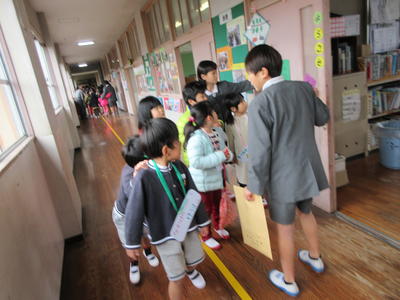 保護者の方が説明を聞いていらっしゃる間、五年生が新一年生のお世話をしました。