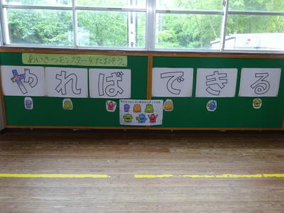 廊下に掲示している白地抜きの「やればできる」に貼り付けていきます。