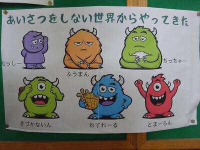 「あいさつモンスターをたおそう」の取組がスタートします。