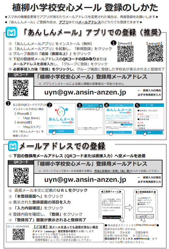 ※ 安心メール登録のしかた ※