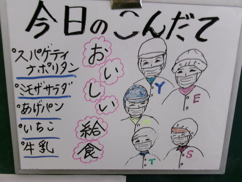 子どもたちの大好きな、ナポリタンに揚げパンがメニューにあり、子どもたちはうれしい顔でいっぱいでした。
