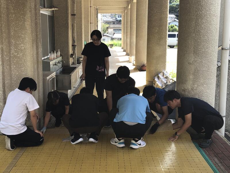 さて、午前中は、被害状況を町に報告する必要があったため、来ている職員7名で校内を点検しました。15:30頃再度ひどかったところを確認する予定です。