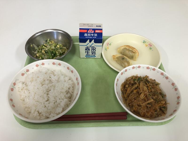 本格的に暑い日が続いています。こういう時は、食欲も落ちてしまいがちなのですが、今日は暑くとも食欲が落ちないメニューが並びました。やきギョーザ、マーボー春雨、にらサラダどれも町中華メニューでおいしくいただきました。牛乳もキンキンに冷えてこれまたよかったです!! 校 長