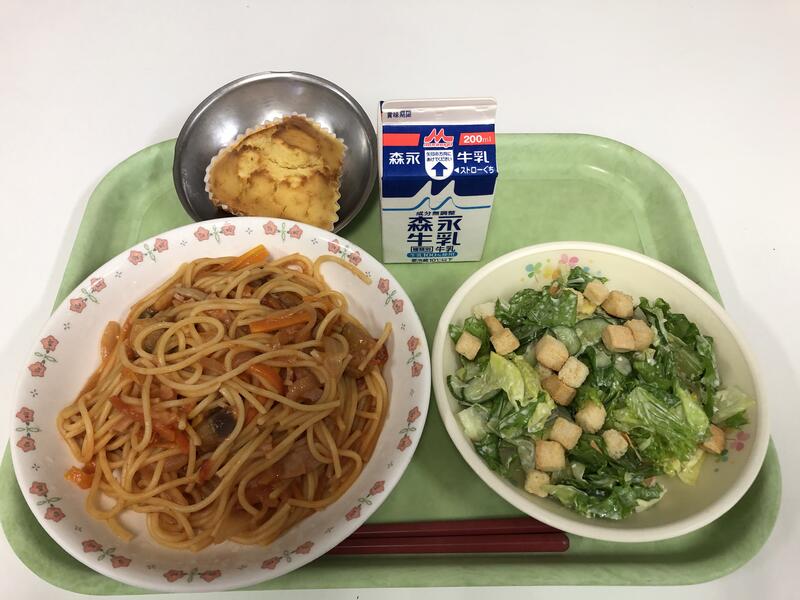 個人的に大好きなメニューが出そろいました。暑い日の麺メニューはいいですね!今回は、米粉マフィンに注目しました。米粉パンが個人的に苦手だからです。しかし、今日のマフィンは、これまでの米粉のイメージを一掃するおいしさでした。シーザーサラダも暑い日にピッタリでした。今日は6年生から「食べすぎました」の声を聴きました。今日の調子でこれからもしっかり食べてください! 校 長
