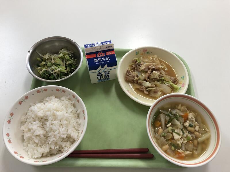 9月になってもなかなか涼しくなりません。暑さは食欲にも影響します。そこで給食の先生は、食欲がわくようなメニュー・調理に努力されていることが食べていてよくわかります。今日の場合は、「キムチ味」と「中華ドレッシング味」がそうだと思いました。おかげでご飯が進みました!チンゲン菜のスープは、暑い中の熱々メニューでしたがそれもまたよいものです。どれもおいしくいただきました。また牛乳が冷たくて一気に飲んでしまいそうです。