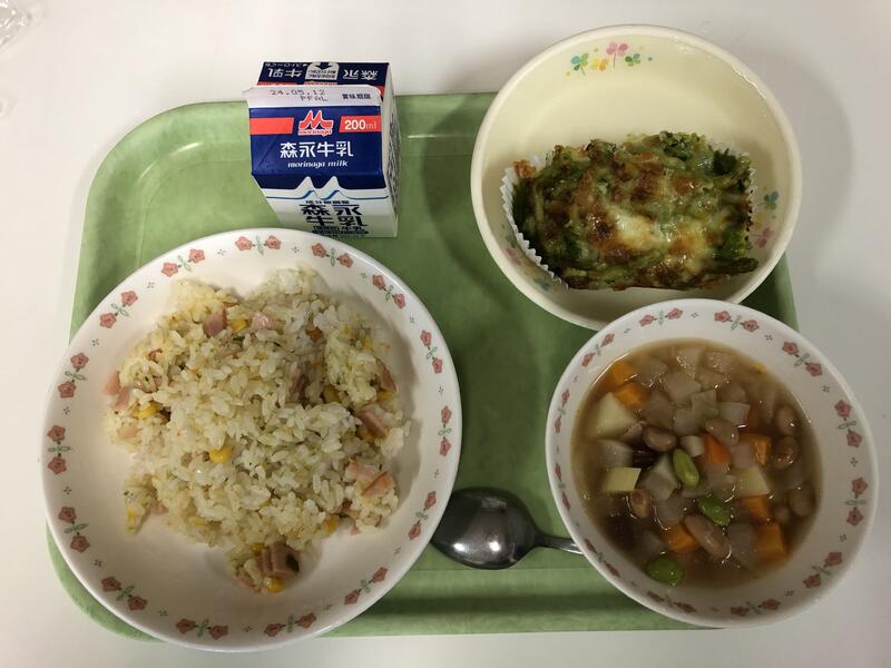 さて今日のメニューでは、特にグリーングラタンには衝撃を受けました。マカロニまでが緑に彩られ、この時期にぴったりの色合いのメニューとなりました。そしてグラタンはやっぱりチーズですね。おいしくいただきました。私個人の話で恐縮ですが、昨夜グランメッセでプロレス観戦をした後に帰宅してピラフを食べましたので見事にかぶりました。「カレーがかぶった」はよく聞くのですが・・・笑笑  校長
