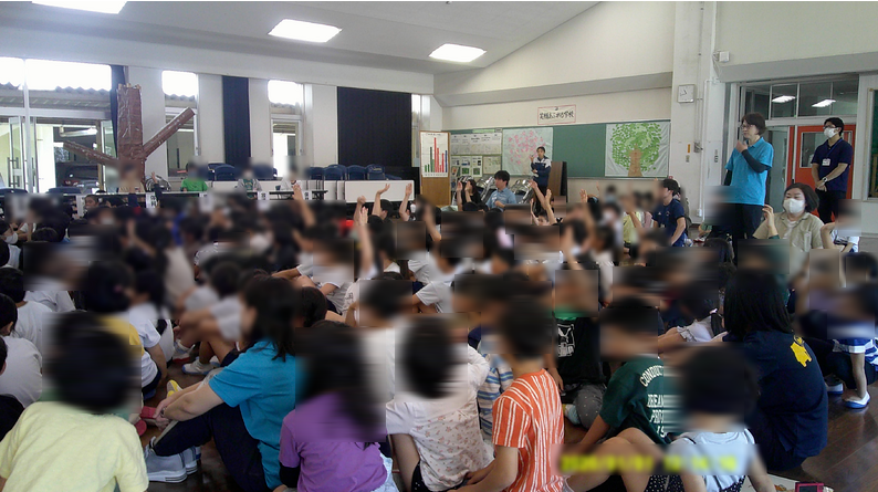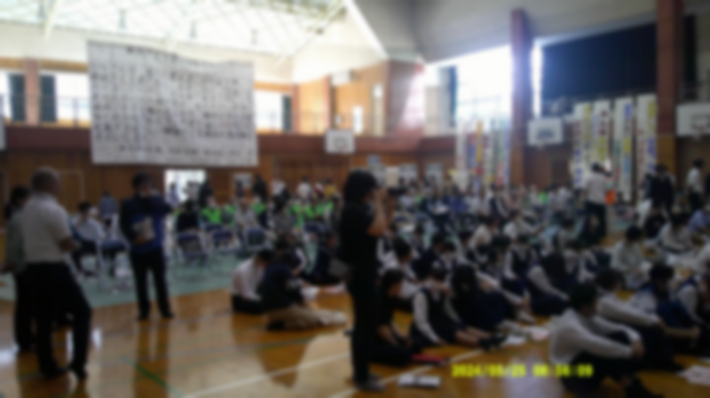 授業の冒頭で、○○○の・・の方角を向いて、みんなで大声でメッセージを伝えました。
