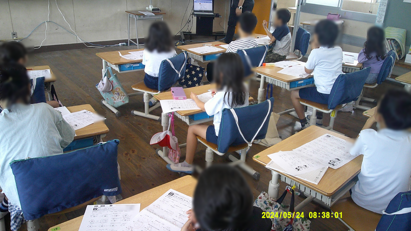 低学年の子は、私が教室に入るとすぐに反応しますので、授業の支障にならないように「シー(授業に)集中、集中」と言いながら入ります。また、カメラに向かって平気でVサインもしてきます苦笑。
