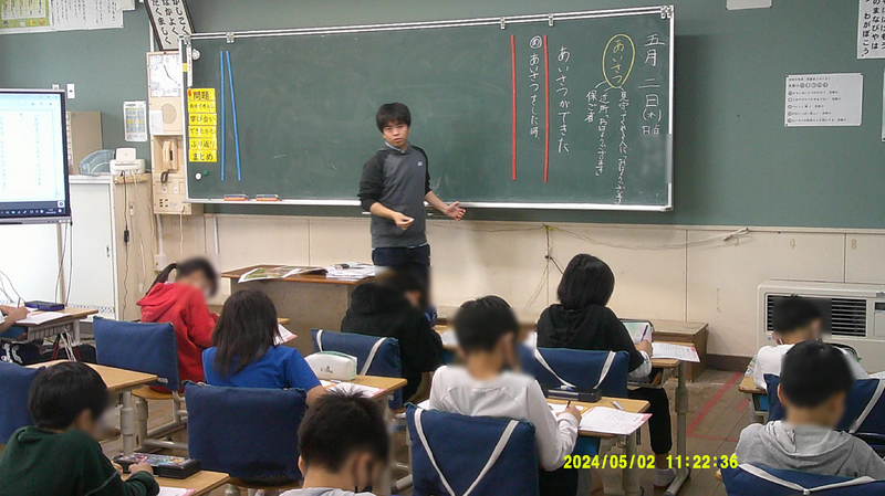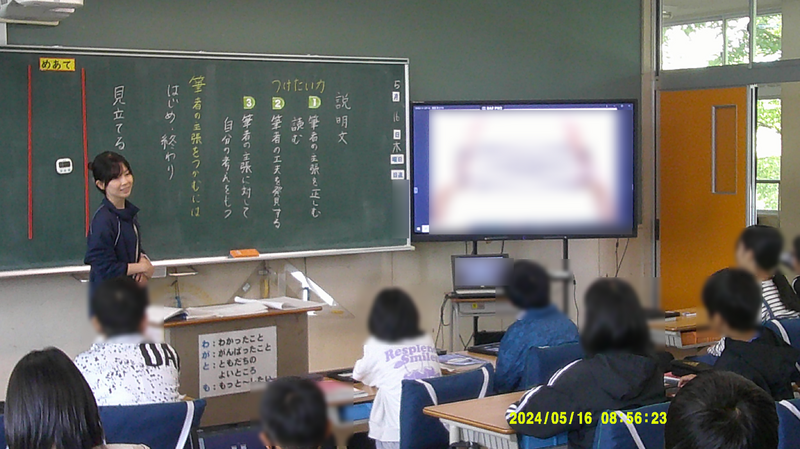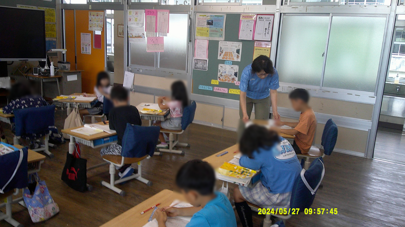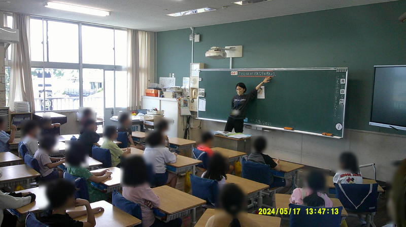 低学年の子は、私が教室に入るとすぐに反応しますので、授業の支障にならないように「シー(授業に)集中、集中」と言いながら入ります。また、カメラに向かって平気でVサインもしてきます苦笑。