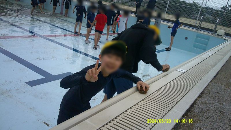 Mさんも余った水を溝に流していました。委員会活動お疲れ様!でも限りある水資源を大切にするよう話をしました。