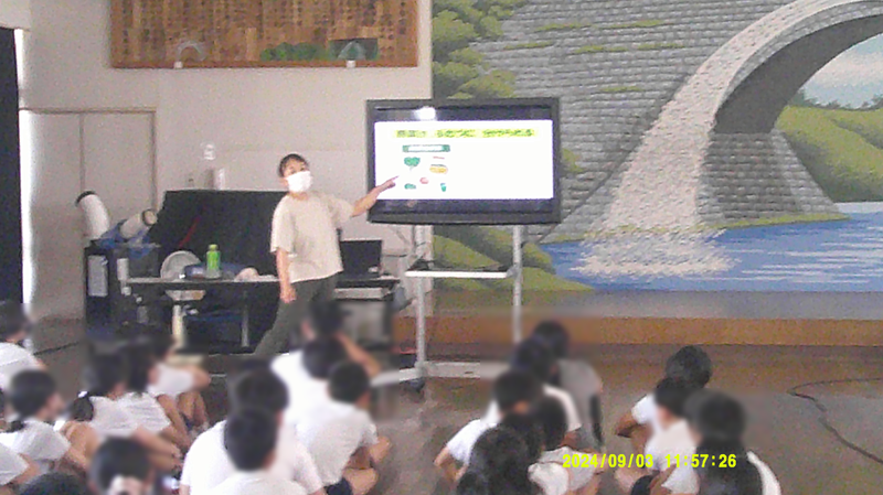 今日は出張等ありましたので、4時間目の高学年向けの授業を少しだけ参観しました。山都町立学校の栄養教諭T先生をお招きしての授業です。