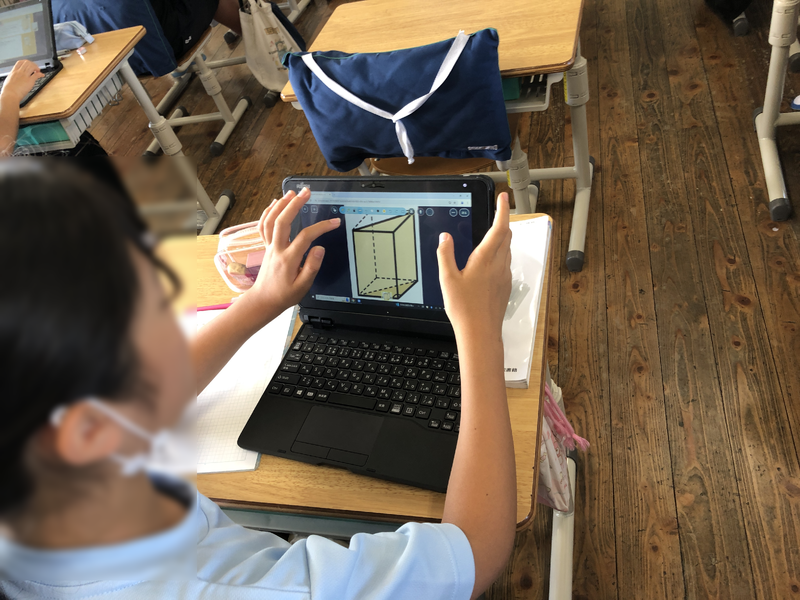 ペア学習後に、子どもたちはタブレット上で式と説明を入力し始めました。教科書の図もうまく取り込みながらスイスイと操作していました。さすがはデジタルネイティブ世代です。感心します。