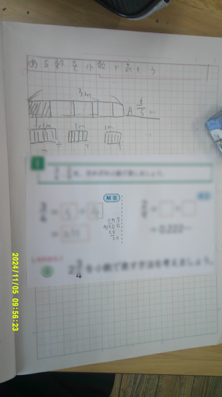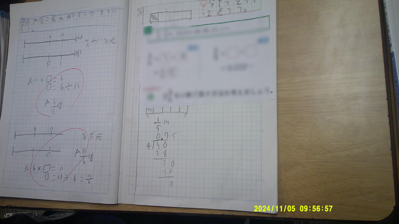 少人数3クラスとも児童のノートに着目しました。筆算を小さく書いたり、消したりする子がいましたので、「堂々と書きなさい!」「消すなー」と声をかけて回りました。ノートの右端に計算用スペースをつくっておくのも1つの方法です。定規もうまく使いましょう!