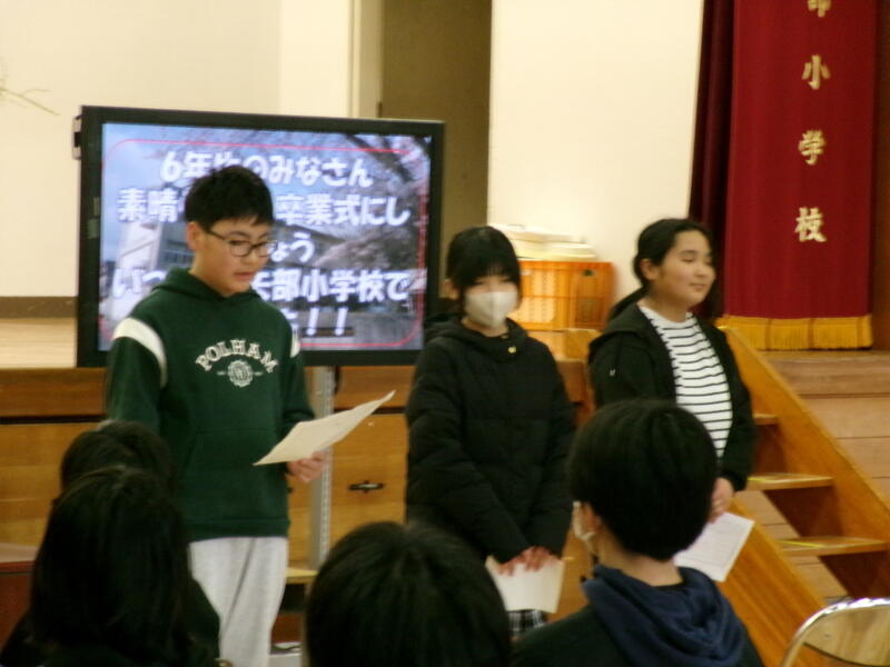 2時間目は、在校生と卒業生との最後の卒業式の練習を行いました。教務主任が中心となり、各担任の先生が子どもたちの意欲を高め、練習に取り組んできました。大きな声で、気持ちをこめた練習ができました。6年生の呼びかけや歌を、真剣に聞く在校生の姿が印象的でした。