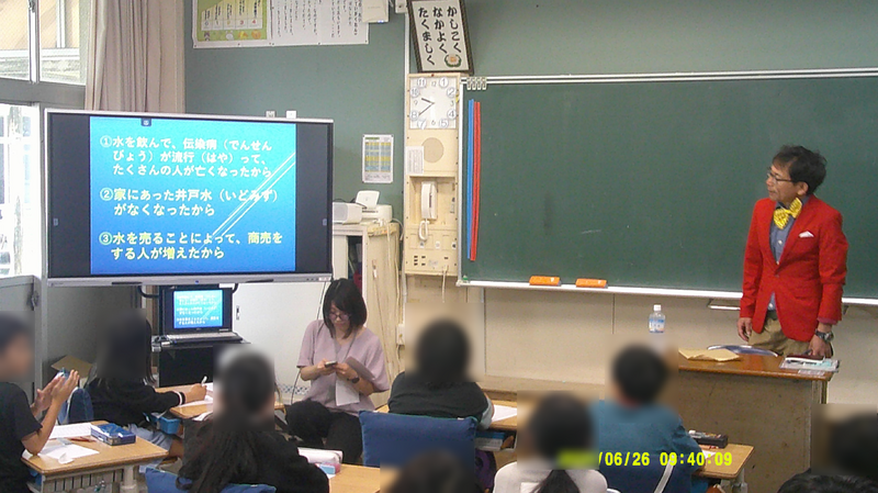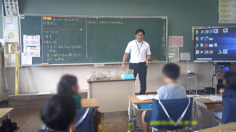 水のかさのはかり方についての学習でした。このあと、H先生が「はかり方としてまずい例」を実演しました。それをみて、子どもたちにどこがまずかったかを気づかせていきます。