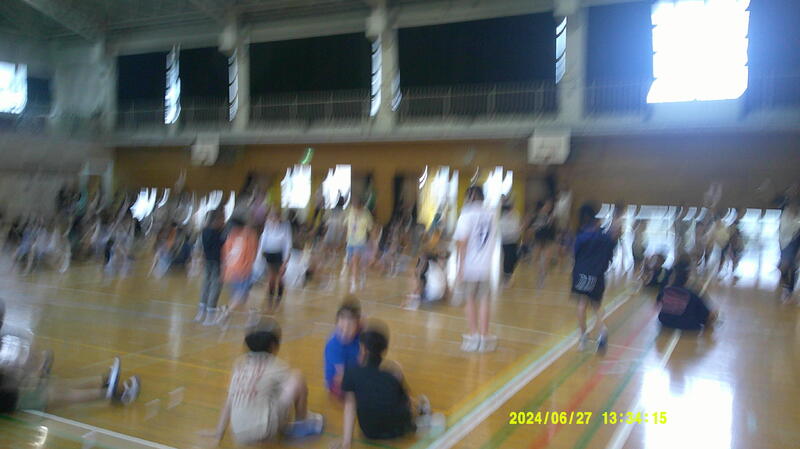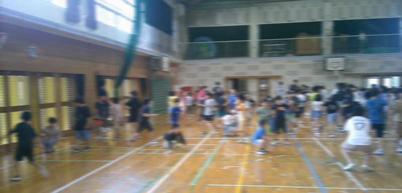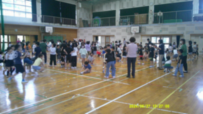 昼休みに全校児童が体育館に集まり、「進化ゲーム」という遊びをしました。