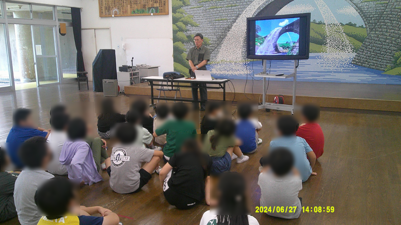 「準絶滅危惧種の生物・・・でも山都町には、意外といる」という興味深い話をされました。ビックリしたのは、子どもたちの中には生物の名前に詳しい子が何名かいたことです。