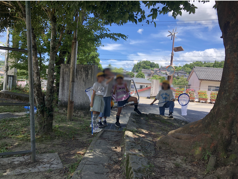 昼休みになると、また2年生は昆虫採集に来ていました。このときは、セミを捕まえようとしていました。採集は楽しく私たちの学びになることですが、「生命あるもの」であることを常に忘れないようにしてほしいです。