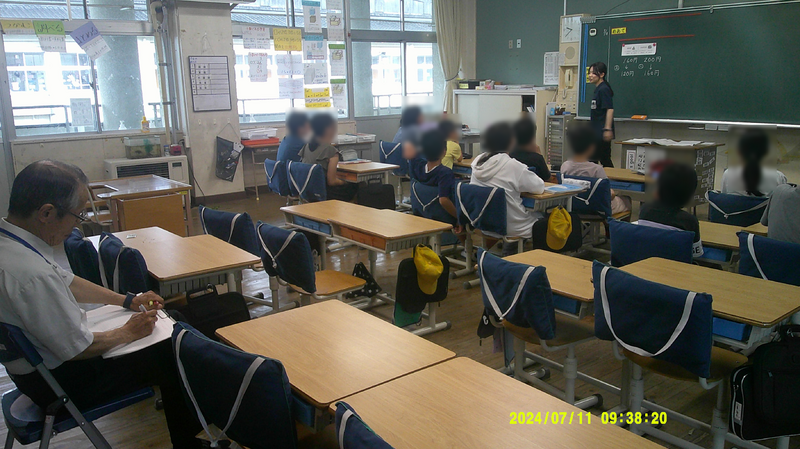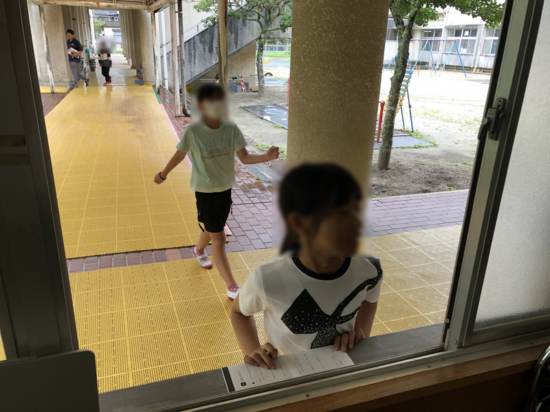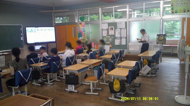 約半分の子が出席していて元気いっぱいでした。児童A「歩いてきたの?」校長「そうだよ。この暑い中に」児童B「もう宿題終わりました」児童C「明日はサッカーの試合」など自分たちから情報発信してくれました。ここでも、私は先生方に休み中の様子を聴いたりしました。