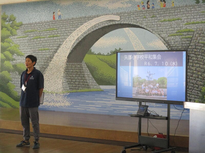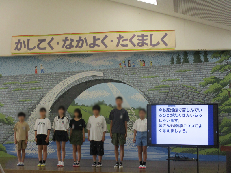 後半は、本題である。平和について考える内容の発表でした。6年生は、自分たちが学んだことをしっかりと、自分たちの言葉で訴えていました。