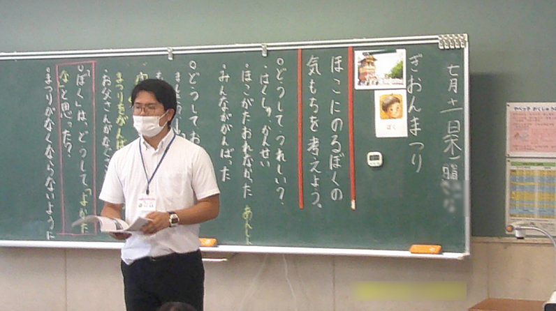 昨年の八朔祭のことを思い出させながら、主人公の気持ちを考えさせました。授業を初任者指導、校長、教頭で参観し、感じたことを授業者に伝えました。私たち教師は、時にはいろんな人に自身の授業を観てもらい、意見をもらうことで授業改善につなげていきます。結果的には子どもたちに還元されます。