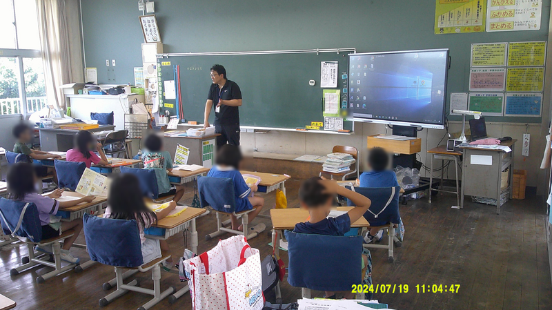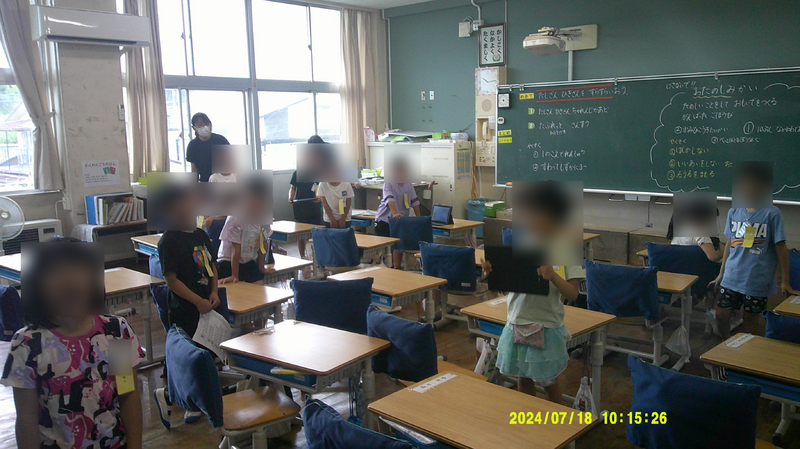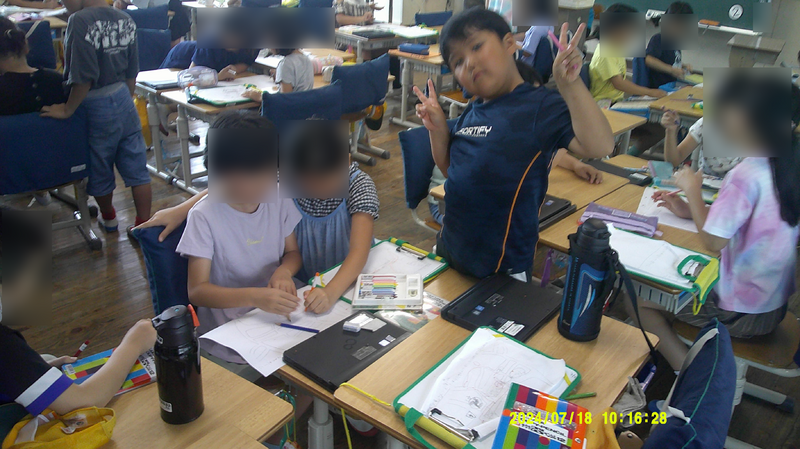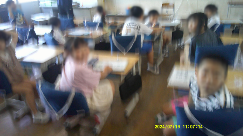 約半分の子が出席していて元気いっぱいでした。児童A「歩いてきたの?」校長「そうだよ。この暑い中に」児童B「もう宿題終わりました」児童C「明日はサッカーの試合」など自分たちから情報発信してくれました。ここでも、私は先生方に休み中の様子を聴いたりしました。