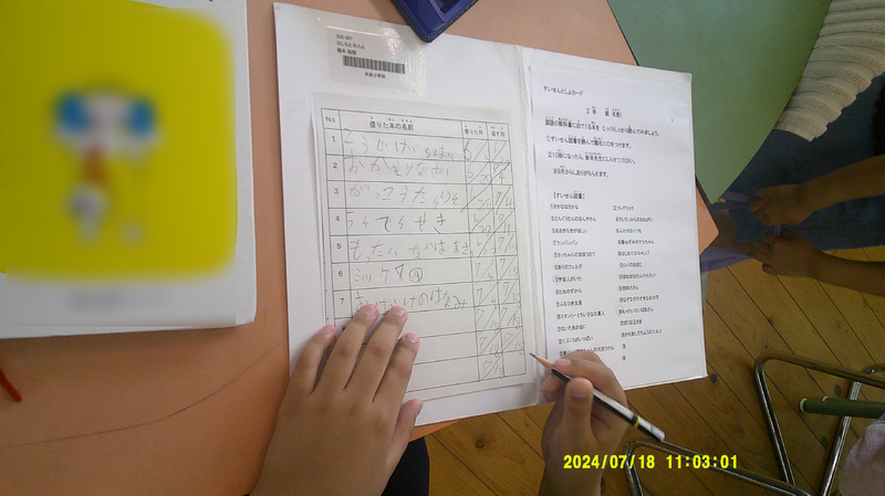 5冊まで借りることができます。「重いです~」と言いながら持っていく子どもの姿もありました。