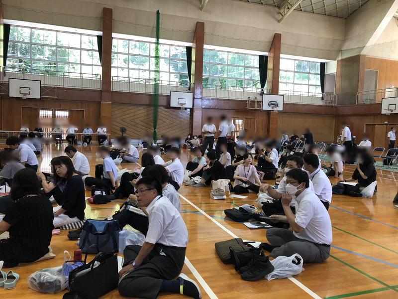 矢部中学校で10:20から終日行われました。体育館は暑かったです!!