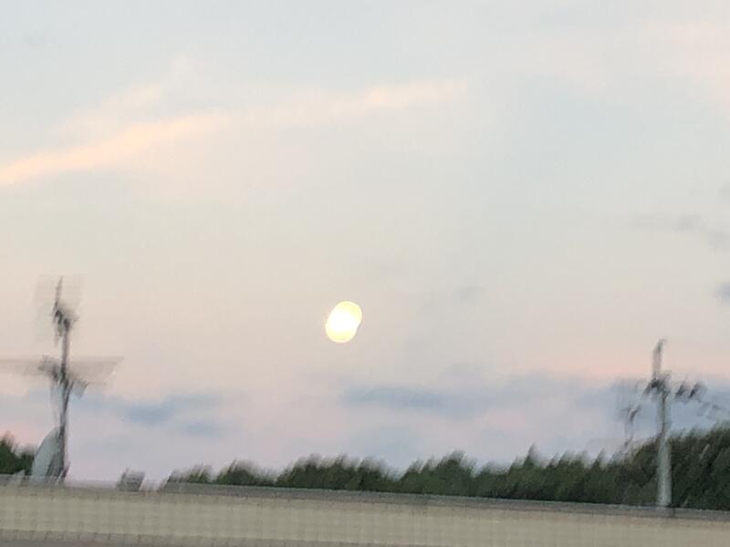 昨夜は、どうせ悪天候で見られないと思って気にもしなかったのですが、朝、益城町の家を出るときにから月が見えてたので1日遅れのスーパームーン(そもそも、翌日だからそう呼ばないのでしょうが)を見かけたのでシャッターを切りました。
