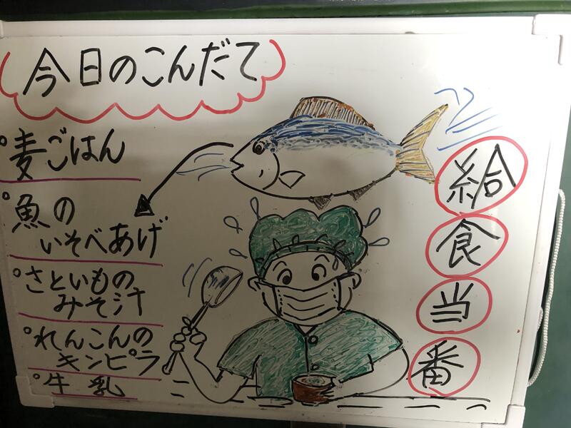 魚の磯部揚げは、揚げ具合も塩加減もバッチリでした。さといもの味噌汁も栄養たっぷり感満載でおいしくいただきました。れんこんのキンピラも、民生児童委員さんから絶賛でした。調理員の先生に「大変おいしかったです」と伝えてくださいとのことでした!!みんなを幸せにしてくれる給食に感謝です!!さらに「来週も来ていいですか?」とリクエストをいただきました笑笑。