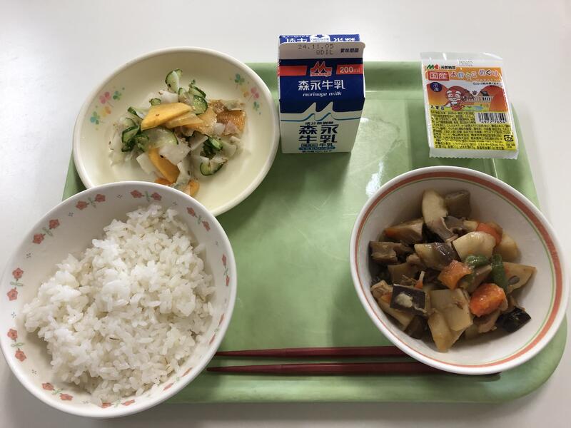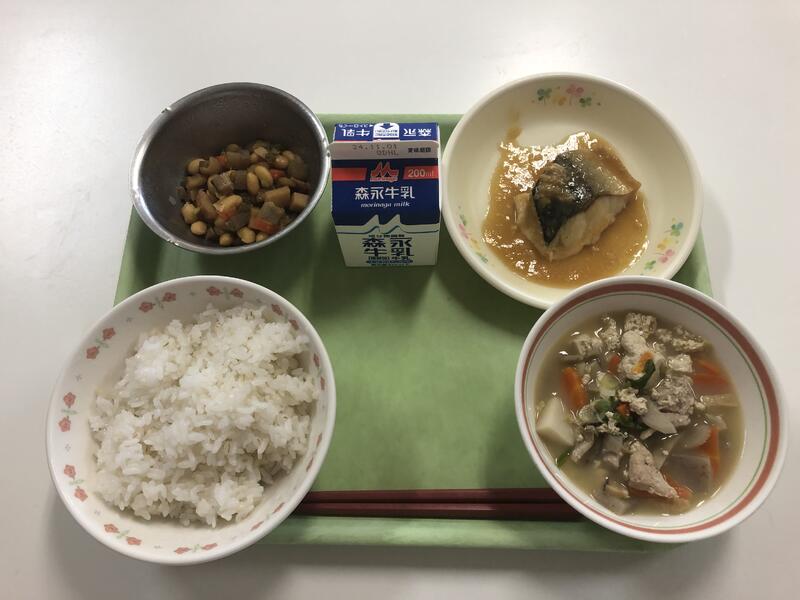 サバの味噌煮は、味噌とショウガの風味がたまらなく、ご飯が進むメニューです。けんちん汁は、神奈川県鎌倉市にある建長寺の初代住職が精進料理として野菜くずも無駄なく使って作った汁物が「建長寺汁」と呼ばれ、いつしか「けんちん汁」に転じたといわれます。ショウガは、体を温めてくれる作用があります。これからの季節には欠かせない食材です。ごもく豆もそうでしたが、具だくさんで味もバッチリのメニューで今日もおいしくいただきました!