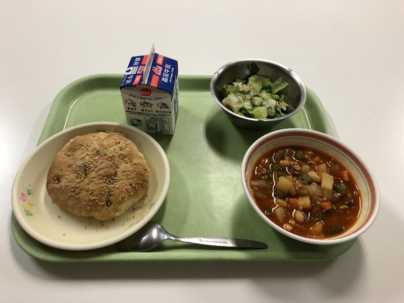 今回、こうやって献立について調べてから食べてみるとおいしさが増しました。※正直、個人的にはチリコンカンはどちらかというと苦手な献立です。しかし、フォカッチャとのコラボで大変おいしくいただきました。特にフォカッチャは、白ごまがまぶしてあり大変おいしかったです。