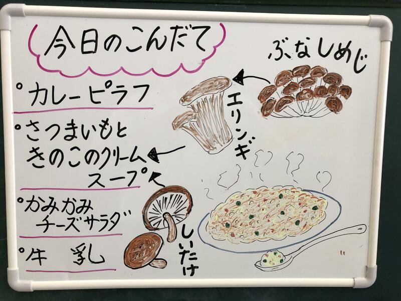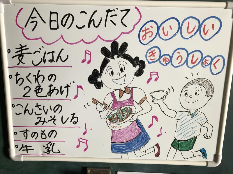 今日のメニューもすべてが具だくさんで、きめ細かな調理をして提供されていることがよくわかります。もちろん、味も抜群でした!各クラスとも「完食」で、調理員の先生方に応えてくれたらいいですね。