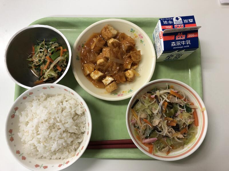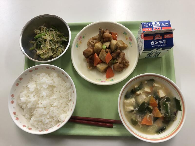 厚揚げのチリソース煮 厚揚げは香ばしさと豆腐の柔らかさを同時に味わえる食材です。カロリーを抑えヘルシーに食べられるので家庭でもおすすめのメニューです。辛さも小学生向けに食べやすい仕上げになっていました。