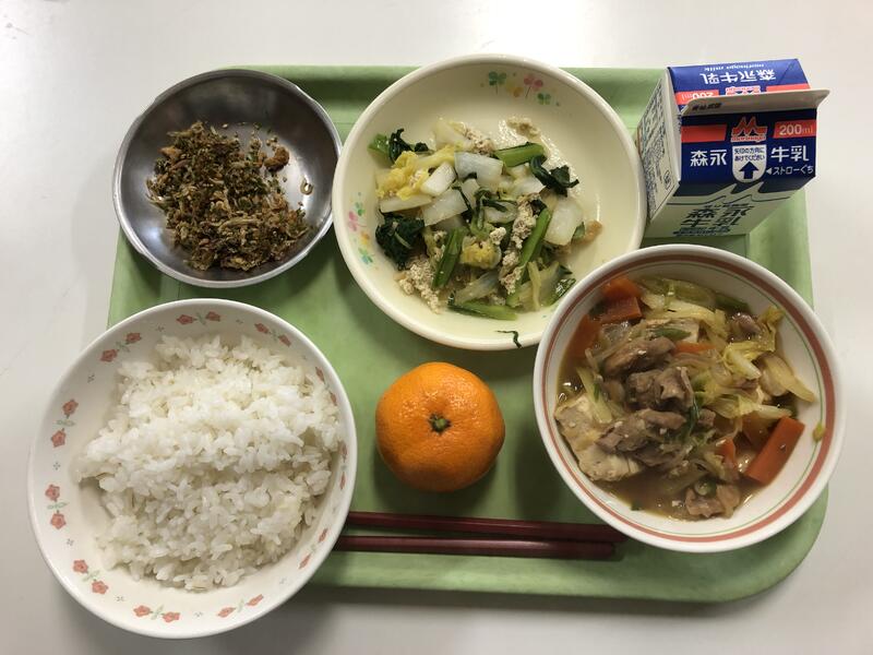 菜焼きとは、小松菜などの青菜を油で炒めて、塩か醤油で味付けする料理です。そういえば、私の小学校時代に最初にやった調理が青菜の油炒めでほうれん草を塩味で炒めたのを覚えています。すぐに家でも作ってみました。シンプルでおいしかったです!今日の給食は、揚げも入った少し甘い目のメニューでした。小松菜の食感がたまりません!!
