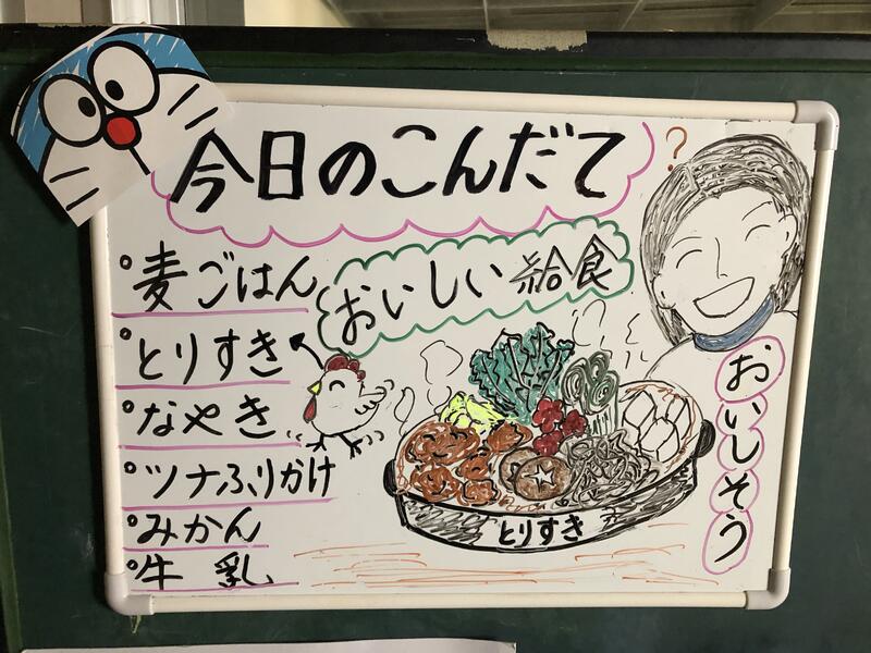鶏すきとは、鍋で鶏肉とゴボウや白菜、タマネギなど季節の野菜を砂糖としょうゆを使って煮込んだ料理です。いわゆる「すき焼き」です。これからは特においしい季節ですね!実は私自身、小学校の時には苦手なメニューでした。長ネギのデカいやつが入っていてかんでもうまく飲み込めず苦手意識をもったのだと記憶しています。しかし、いまやネギがデカかろうがおいしく食べられるようになりました。