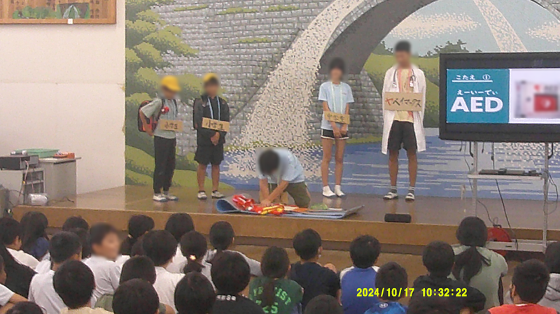 本日は保健委員会からの発表でした。何と「救急救命講習」の児童版でした。