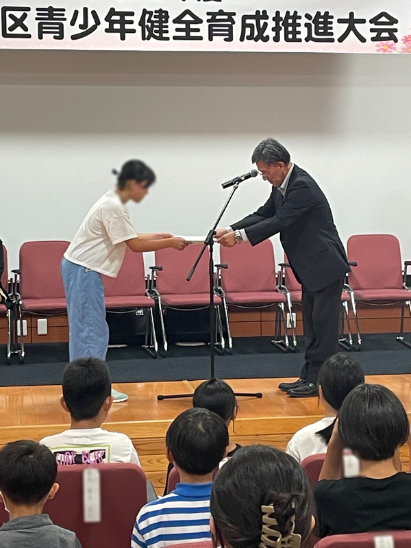 本校からも数名の受賞があり、表彰されました。また金賞受賞者は、作文を披露しました。