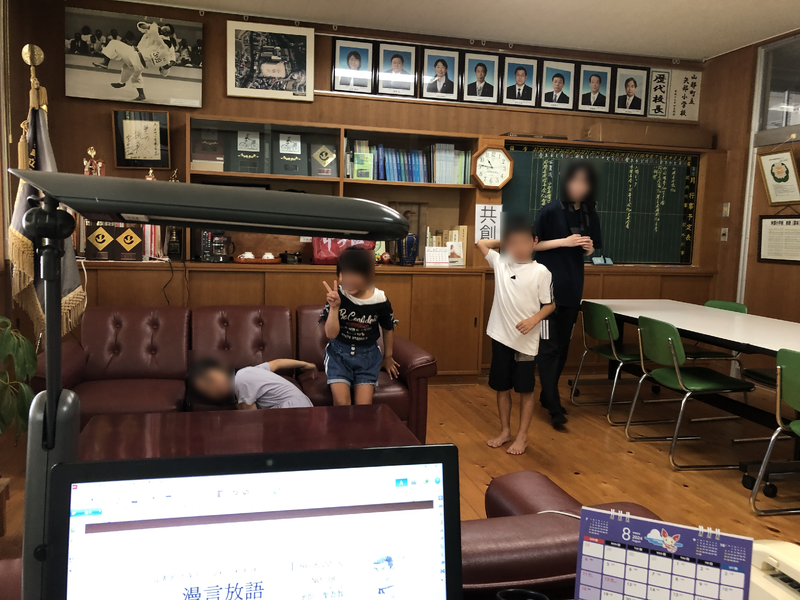 盆を挟み、学校も閉庁で1週間ほど誰もいない状態でした。当然子どもたちともしばらく会っていない状態でしたので、久しぶりに子どもたちの声を聴けて良かったです。今日は、校長室で執務していたら「校長先生~♡」と声が聞こえてきたところから、子どもたちとの絡みが始まりました。