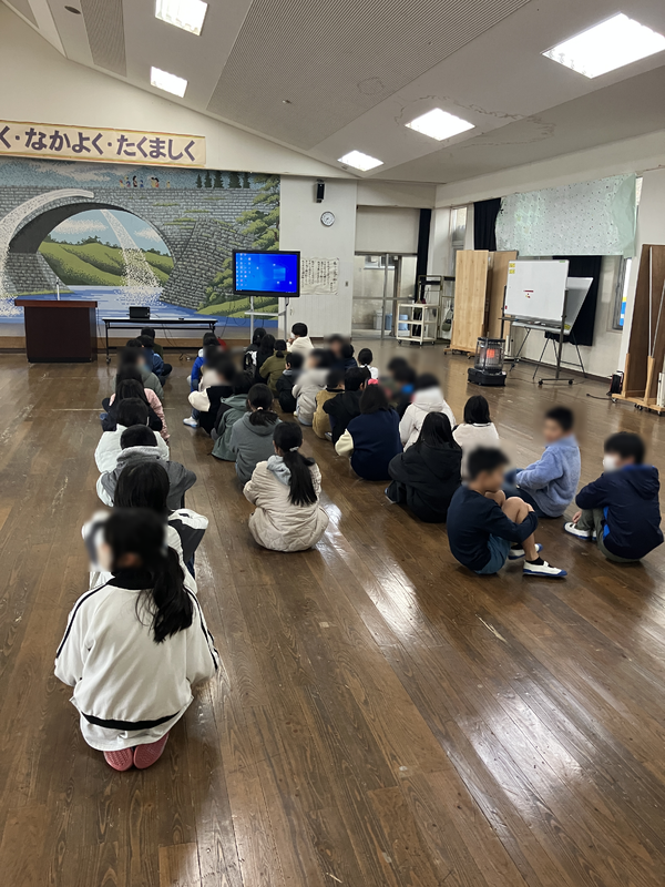 今日の会場への入場一番乗りは5年生でした。職員朝会のため、先生が教室に戻らなくとも、自分たちだけで整列・入場してきていました。「3学期からは自分たちが引っ張っていかねばならない」という決意の表れでしょう。頼もしい!!ほどなく6年生も自分たちで入場してきました。