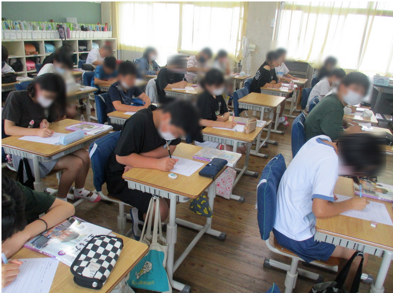湿度が高く汗がダラダラ流れながらの授業でした。昨日の指導訪問授業で板書の仕方や子どもたちの実態を把握して今日の授業に臨みました。授業しながら、いくつか昨日の謎も解けました。やはり、教師は授業してナンボです!校長室に閉じこもっていてはいけません(もっとも、私はじっとなどしてませんが・・・笑笑)