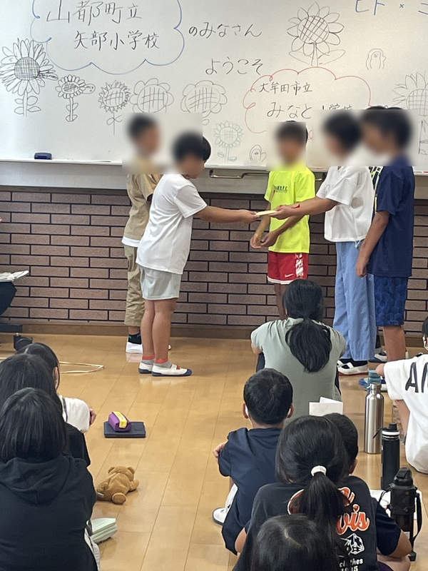 矢部小学校からみなと小学校へメッセージカードを渡しました。