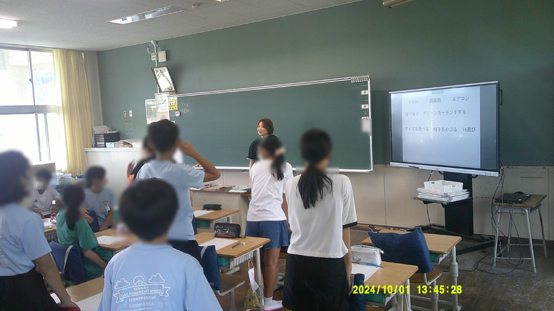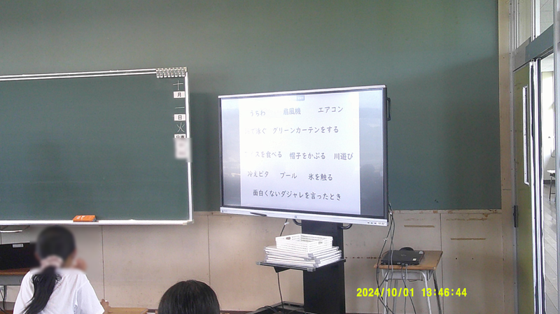 導入問題として「暑いとき、涼しくするために使うものは何がありますか」を出されました。これはうまい問題だなあ!と思いました。