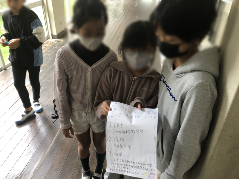 国語の授業への招待状(上の写真で子どもが手にしている紙)でした。期日は10月7日(月)2校時。「ごんぎつねを語り継ごう会」と称して、子どもたちが学んだことを発表する時間になりそうです。聴き手として、校長を選んでくれたのです。うれしいですねえ!!あっ!そういえば先週私がたまたま4年教室に入ろうとしたら、「今入らないでー」と断られたことがありました。反対方向に回り覗こうとしたら気づいた子どもが「ダメダメ」表情。