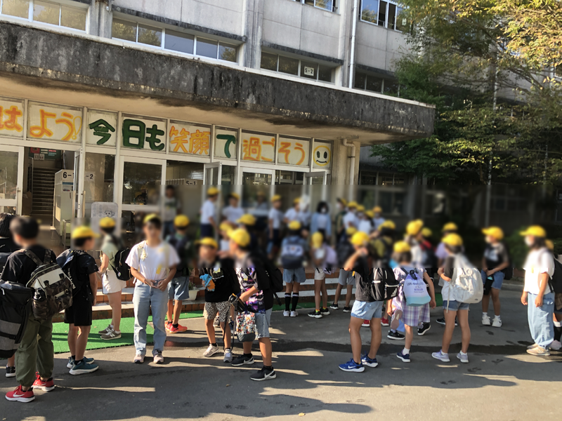 4年生は徒歩で出発しました。