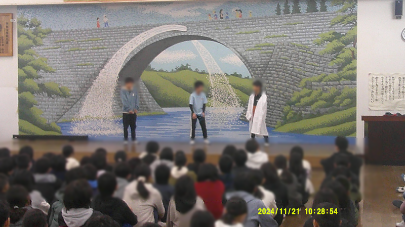今日は、体育委員による劇が披露されました。今から早くも来年度の体力テストのアップをめざします。