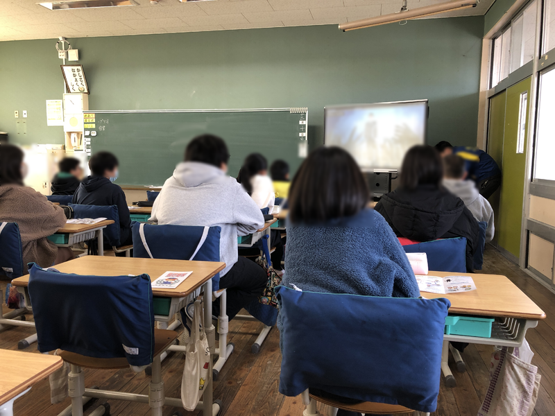 最前列の子は、後ろの子もDVDが見えるように、自ら座席を少しずらすなどの配慮をしていました。自然にこういった行為ができるのがステキです。ちょうどこの日、新聞にも本人の活躍が載っていたので声をかけたところでした。
