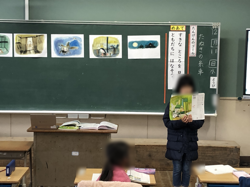 児童A、B 「1の1です。『たぬきの糸車』の発表をするので来てください」
